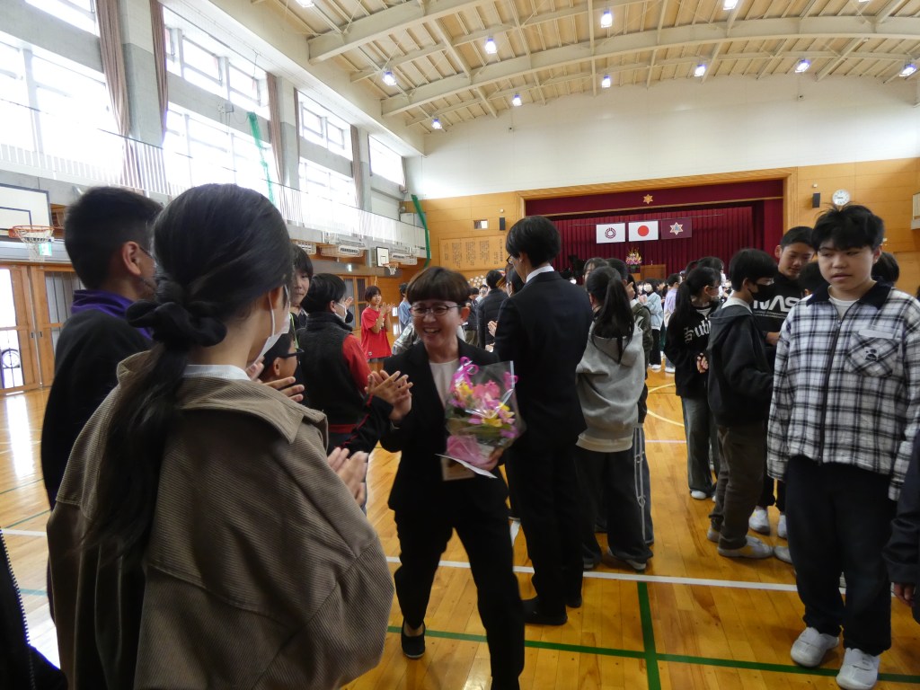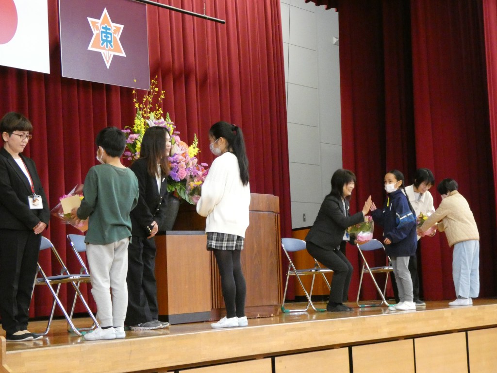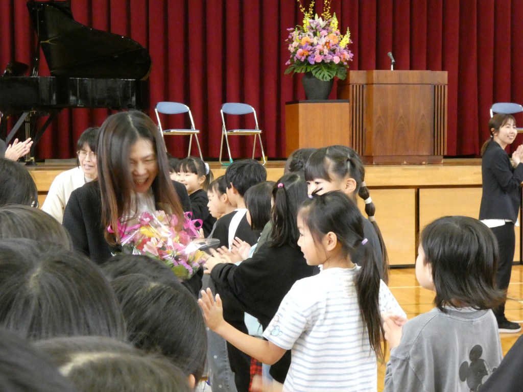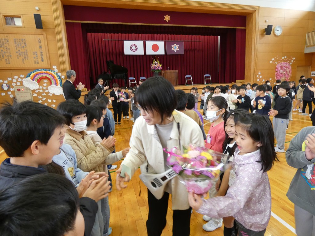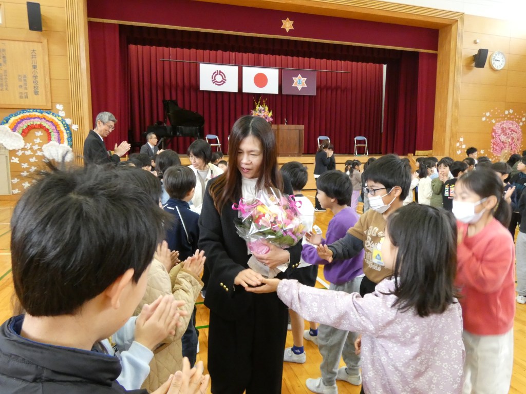 これまでお世話になった先生方とのお別れの日が来てしまいました。今年は5名の先生方とのお別れです。一緒に学校生活を送ってきた思い出がたくさんあふれてきました。子供たちのたくさんの笑顔に囲まれて、お別れする先生方もうれしそうでした。卒業生は中学校で、1年生から5年生は大井川東小学校で、お別れする先生方はそれぞれの場所で4月からも頑張っていきましょう。保護者、地域の皆様も大変お世話になりました。大井川東小学校は皆様のお力を借りて、子供がのびのびと生活できる場所になっています。4月からも新しいメンバーを加え頑張っていきますので、一緒に幸せな学校を作っていきましょう。ありがとうございました。そして、これからもよろしくお願いします。