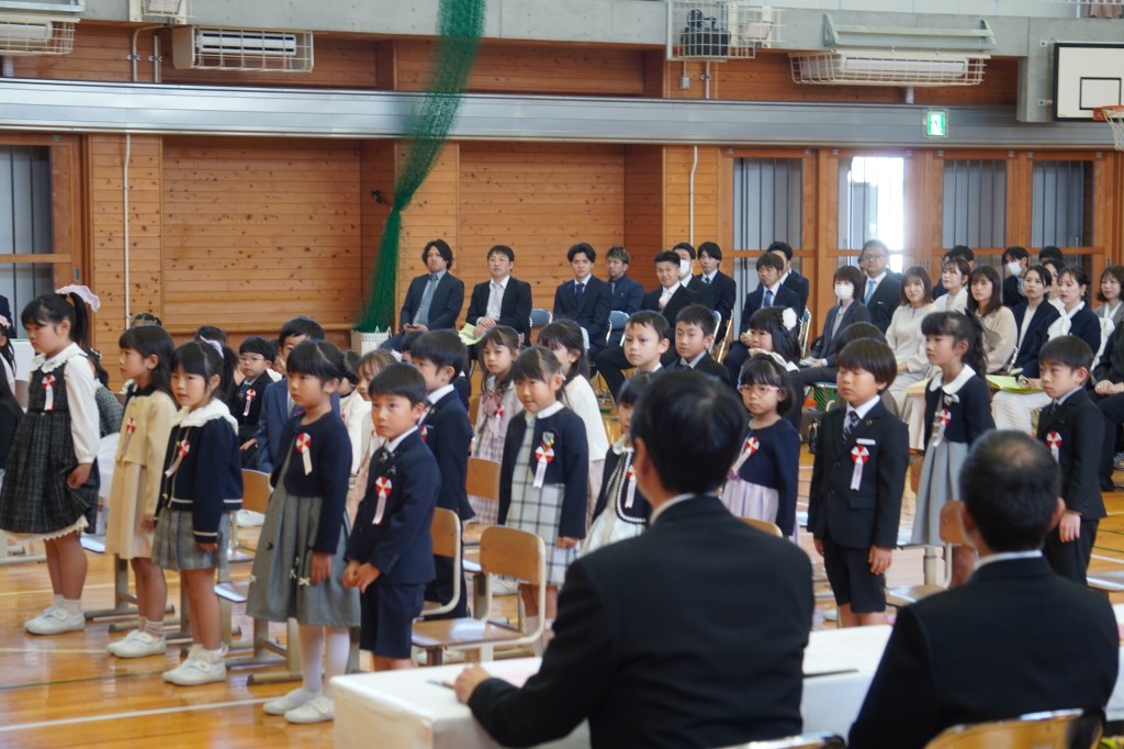 晴天に恵まれたこの日、令和8年度の入学式を行いました。40名の新入生が「しずはまっ子」の仲間入りをしました。「ご入学おめでとうございます。」の呼びかけに「ありがとうございます。」と丁寧に返事をしたり、お祝いの言葉を話す人の目を見てうなずきながら聞いたりと、子供たちの姿勢がとても素晴らしかったです。