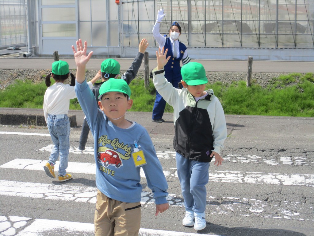 4/17 1年生交通教室 この日、交通指導員が来校し、1年生の交通教室を行いました。歩道のどこを歩くと安全なのか、信号機のないところでの安全確認、信号機のある交差点の歩き方などを学校前の道路で体験をしました。教わったことを登下校に生かして、毎日安全に過ごしていきましょう。 関連