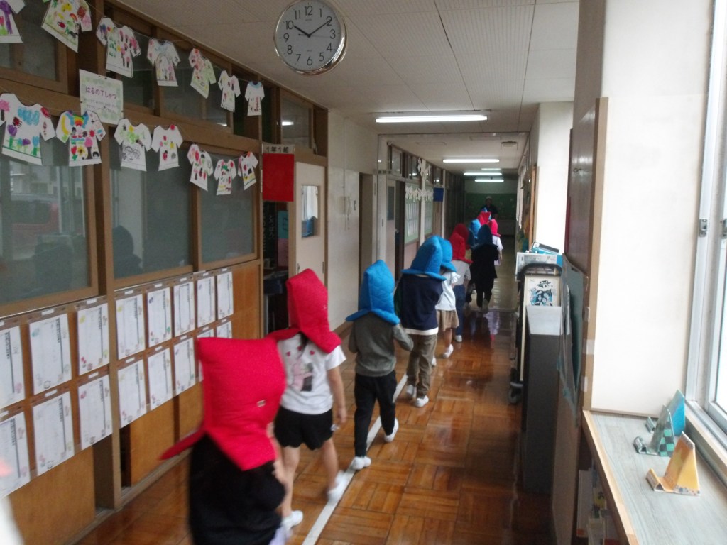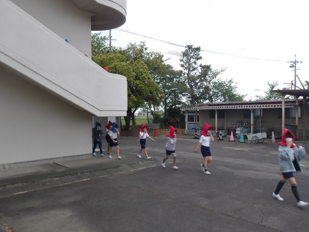 この日、本年度初めての避難訓練を実施しました。訓練放送が鳴り出すと、一斉に子供たちは机の下に身を潜め、避難の合図とともに、静かに素早く最上階へと避難しました。この時、誰一人声を出さずに行動できたことがたいへん素晴らしかったです。教室に戻った後は、火災による避難経路の確認を行い、運動場へ集合しました。ここでも、誰一人声を出さず、速やかに移動しました。
