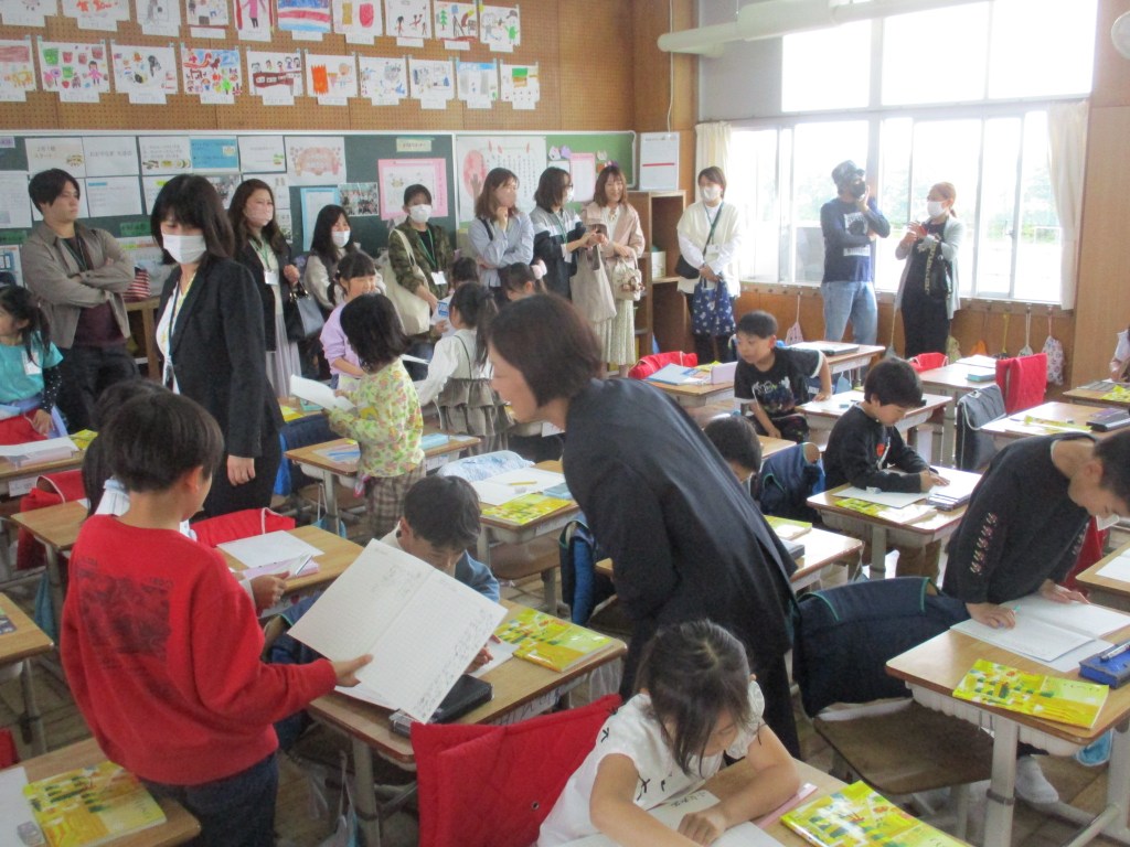 授業では、保護者の方に見守られ、後ろを気にしながらも、自分の考えを発表したり、グループで話し合ったりと、どのクラスも生き生きとした子供たちの姿が見られました。