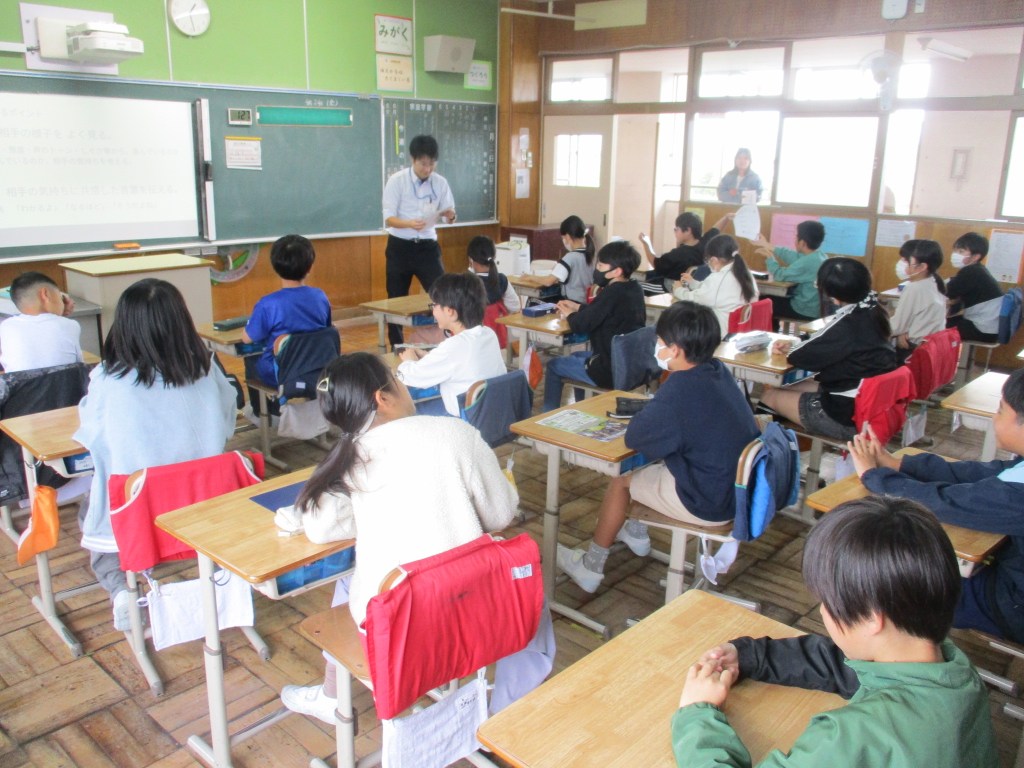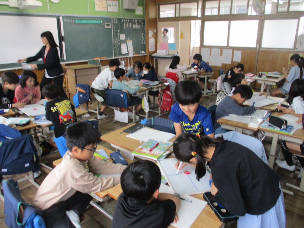 この日、本年度最初の授業参観・懇談会を行いました。小雨が降る肌寒い中、大勢の保護者の方にお越しいただきました。ありがとうございました。授業前に、「早く来ないかな。」と待ちきれずに靴箱へ来る子供たちの姿がありました。