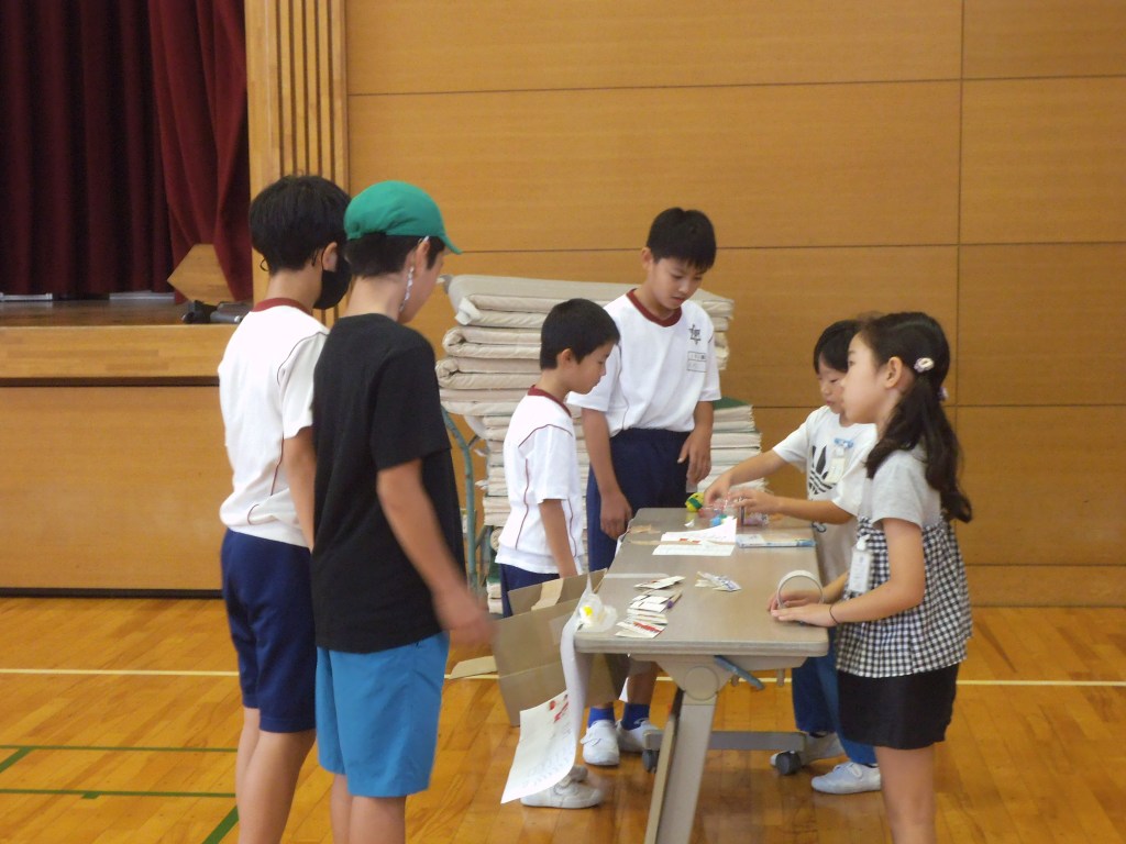生活科での学習のまとめとして、おもちゃランドの開設を計画している2年生。今日は、隣のクラスをお客さんに見立てて、自分たちのつくったおもちゃは来てくれた人に楽しんでもらえるのかなどを確かめるプレオープンをしました。それぞれのブースごとに課題を見つけたようで、完成が楽しみです。