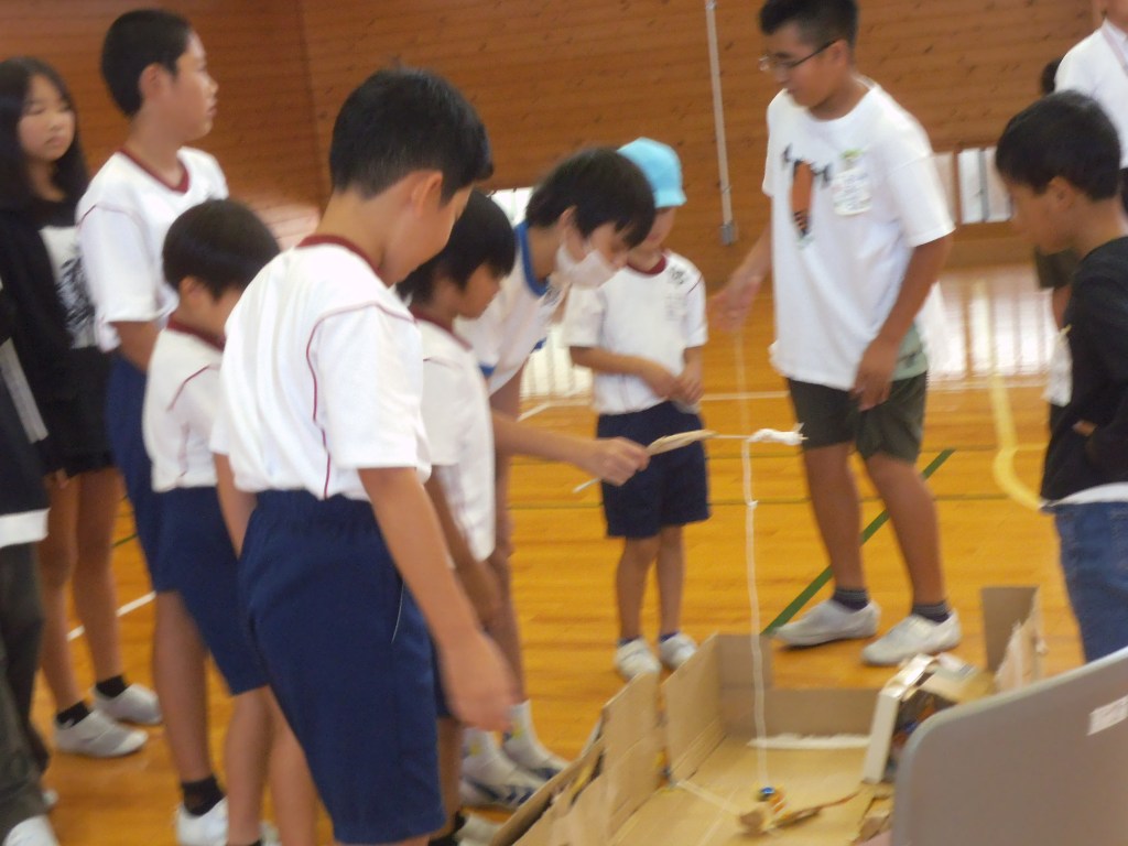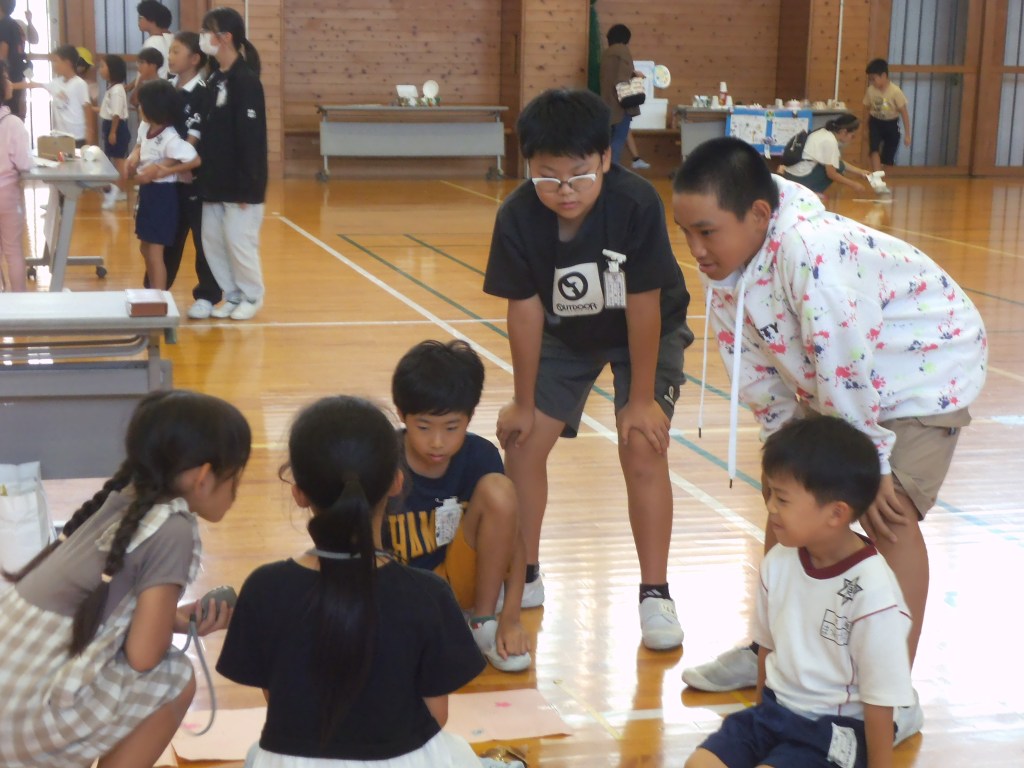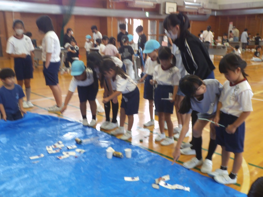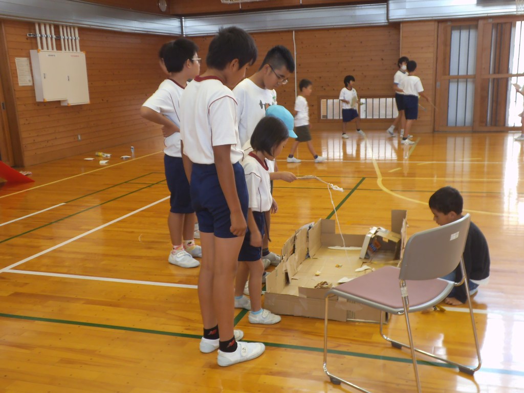 2年生が全校児童に楽しんでもらいたいという願いをもって手掛けているおもちゃランドもいよいよ完成に近づいてきました。今日は、お互いのおもちゃランドを体験することで、もっと工夫できるところはないか、来てくれた人に楽しんでもらうために改善するところはないかアドバイスをし合うこととしました。体育館にセットされたおもちゃランド、本番がとても楽しみです。
